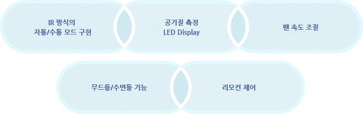 HEXAGON FILTER 를 통한 오염 중화 방식을 적용하여 박테리아, 세균, 바이러스 번식 및 악취 제거하고 팬 속도 조절, 무드등 기능 및 공기질 측정이 가능합니다. 스마트폰 어플리케이션의 블루투스 연결을 통해 리모컨 컨트롤이 가능합니다.