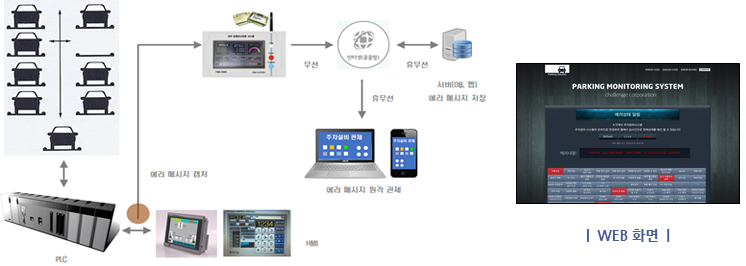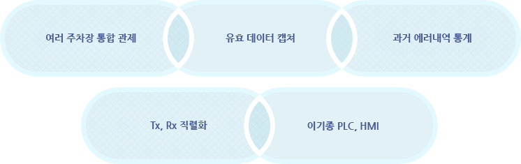 기계식 주차설비 원격관제 시스템은 PLC, HMI간의 에러 및 센서 데이터를 캡쳐하여 실시간으로 서버에 전송하며 관리자 웹과 모바일을 통해 원격으로 모니터링이 가능합니다. 현장에 직접 출동하지 않고 발생한 장애 및 안전사고의 복구와 대응조치를 가능하게 하는 기계식 주차설비 통합 시스템입니다.